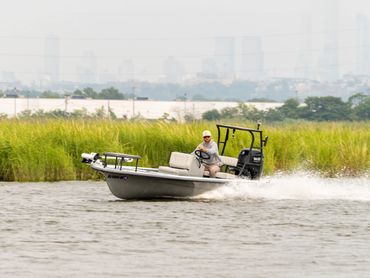 At 18′ with an 82″ beam, the Beavertail Skiffs Vengeance combines the brand’s signature shallow draft with a confident ride across open bays and coastal waters. Its Carolina-flared hull design keeps the run dry and composed, while the broad deck and stable footprint make it equally at home chasing tarpon, working live bait, or spending a relaxed afternoon on the sandbar.